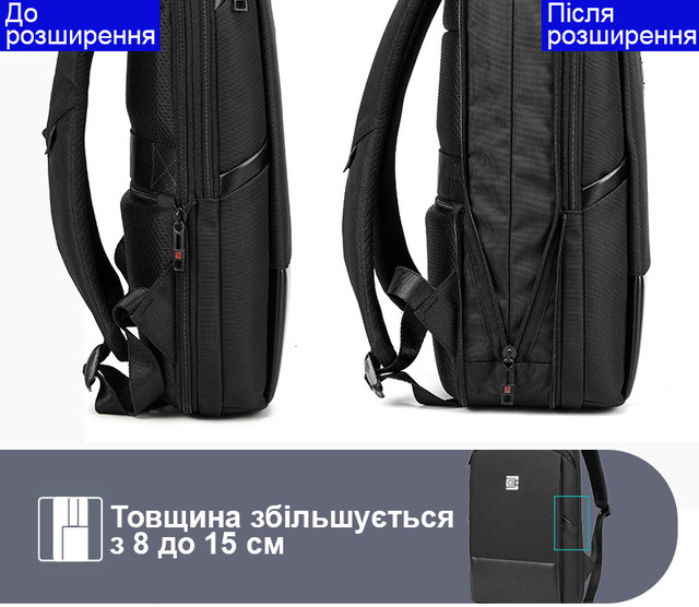 Розширювана ширина від 8 до 15 см робить цей рюкзак ідеальним для різних ситуацій, дозволяючи вам збільшити його місткість в міру необхідності.