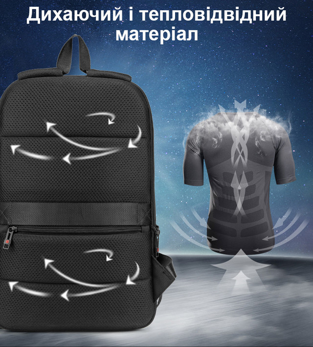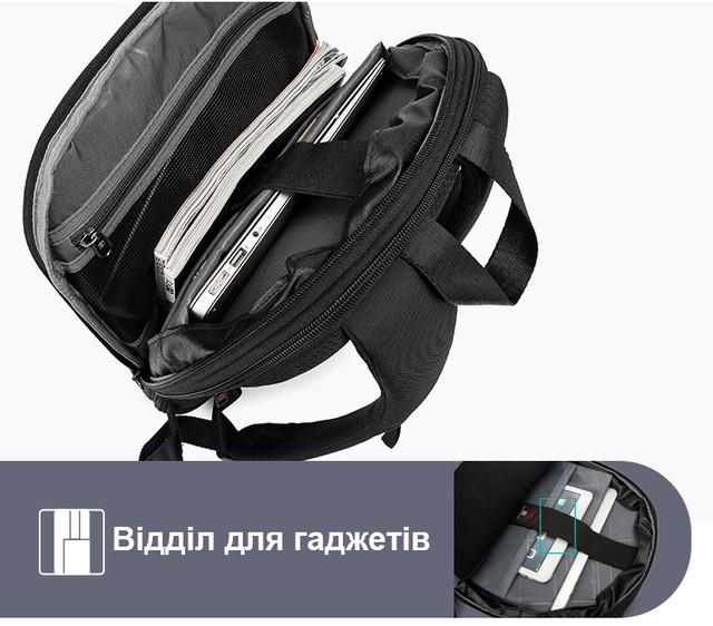 | Особливості | USB-роз'єм, Водонепроникна тканина, Кишеня для ноутбука, Вентиляція спини, Сумісний з форматом А4 |
